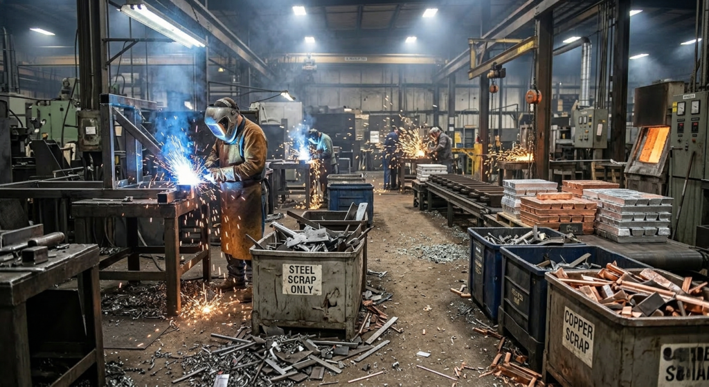 Metal fabrication shops generate significant scrap during cutting, welding, and shaping processes. We provide regular collection services and buy back all types of fabrication scrap — from MS offcuts to stainless steel leftovers.